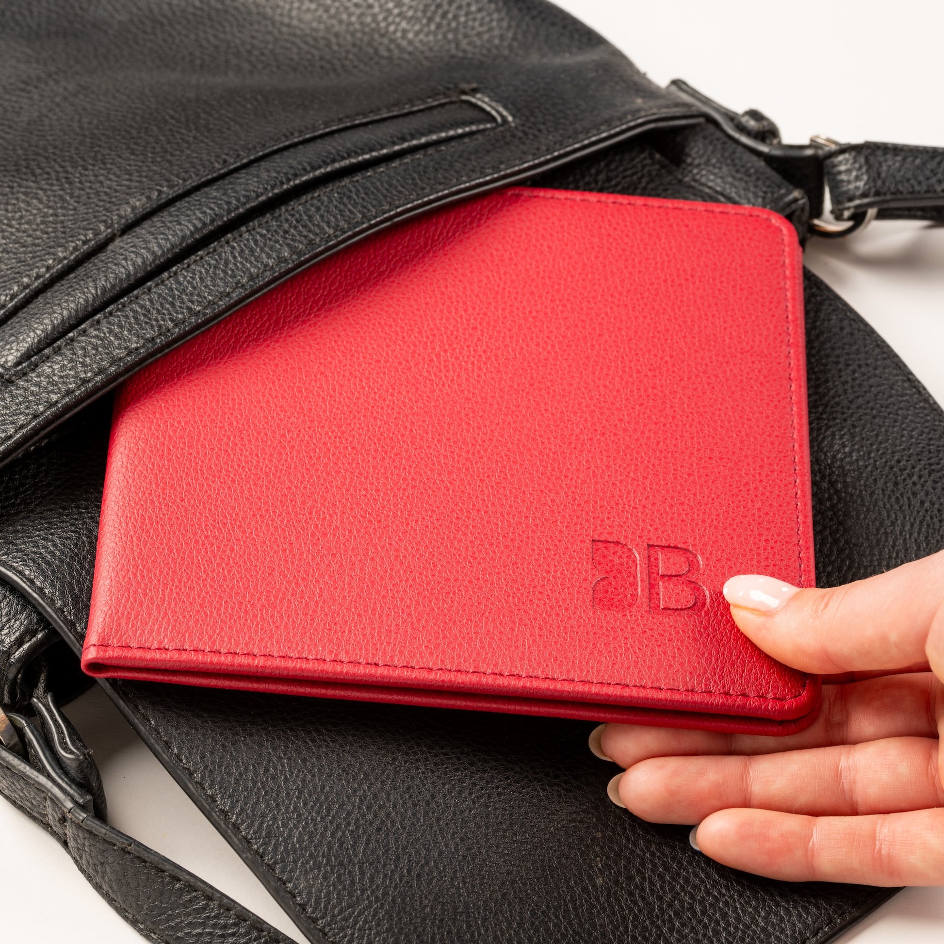 Keep your Blue Badge disabled parking permit safe, compliant, and organised with this eco-friendly red wallet made from 95% certified recycled plastic bottles. Hand-sewn from sustainable recycled materials in vibrant red, this UK-made wallet features our exclusive Hologram Safe© design - an environmentally conscious choice that brings pride in protecting the planet every time you use it.
