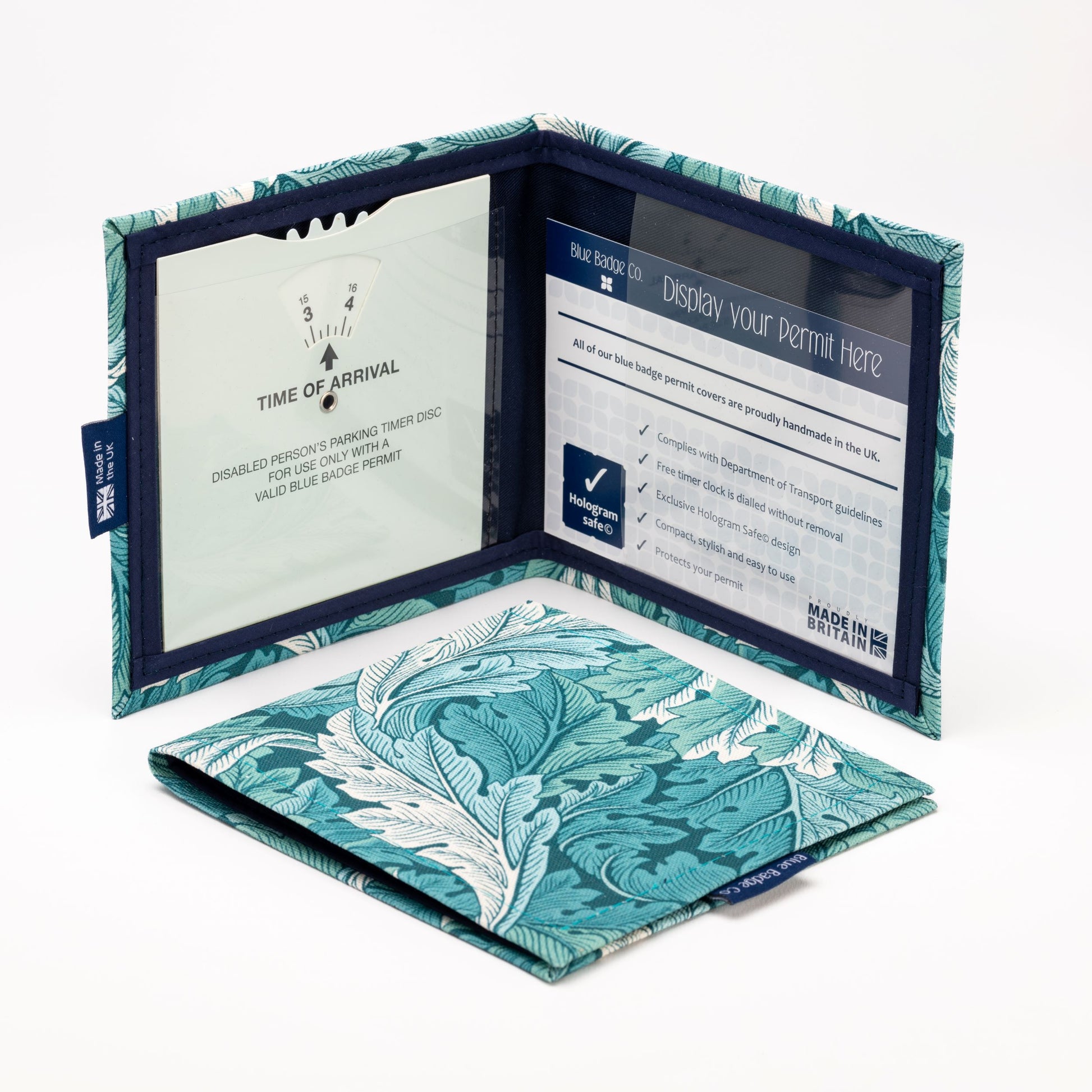 Blue Badge Wallet - Disabled Parking Permit Holder William Morris Acanthus Teal - UK Made