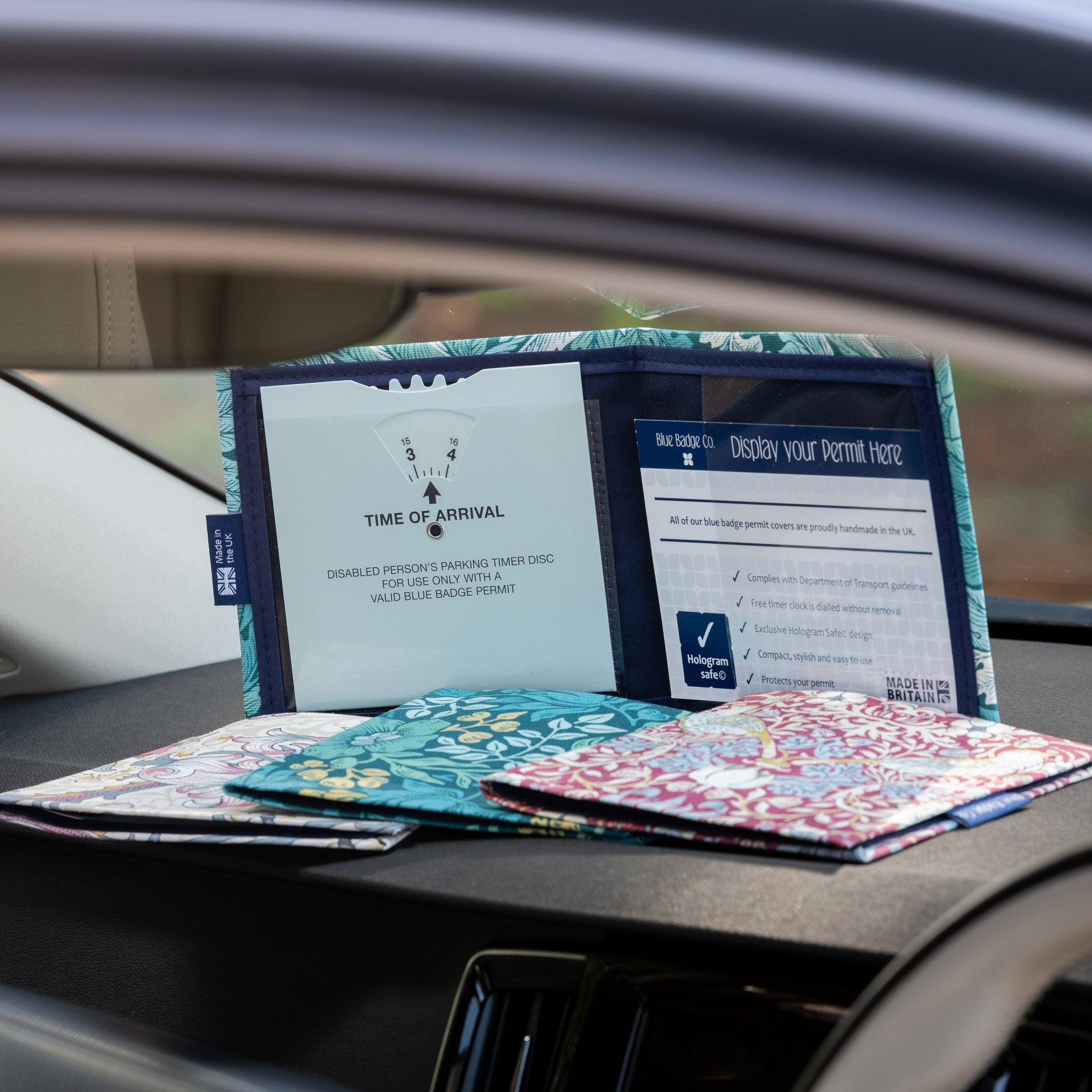 Why Choose This Wallet: This practical yet sophisticated wallet keeps your Blue Badge disabled parking permit and timer clock organised and easily accessible. The exclusive Hologram Safe© design guarantees compliance, whilst the classic William Morris pattern adds distinguished character to an essential item, celebrating Britain's finest decorative arts tradition. The adjustable timer clock requires no removal for convenience.