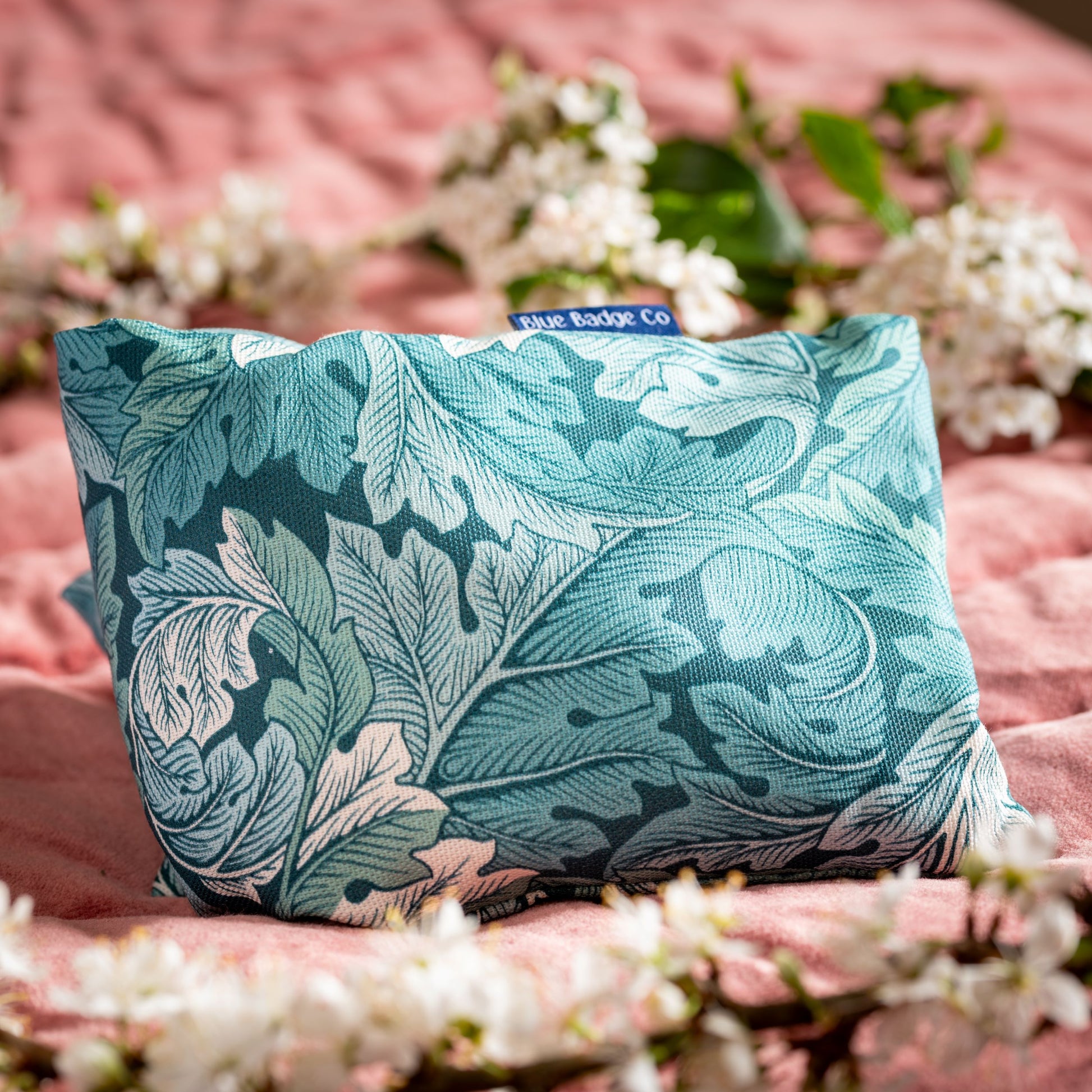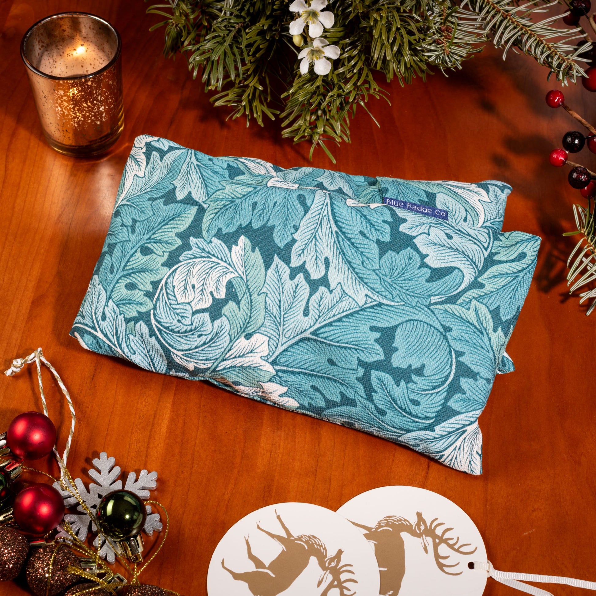 Lavender Wheat Warmer, Heated Wheat Bag in William Morris Acanthus Teal