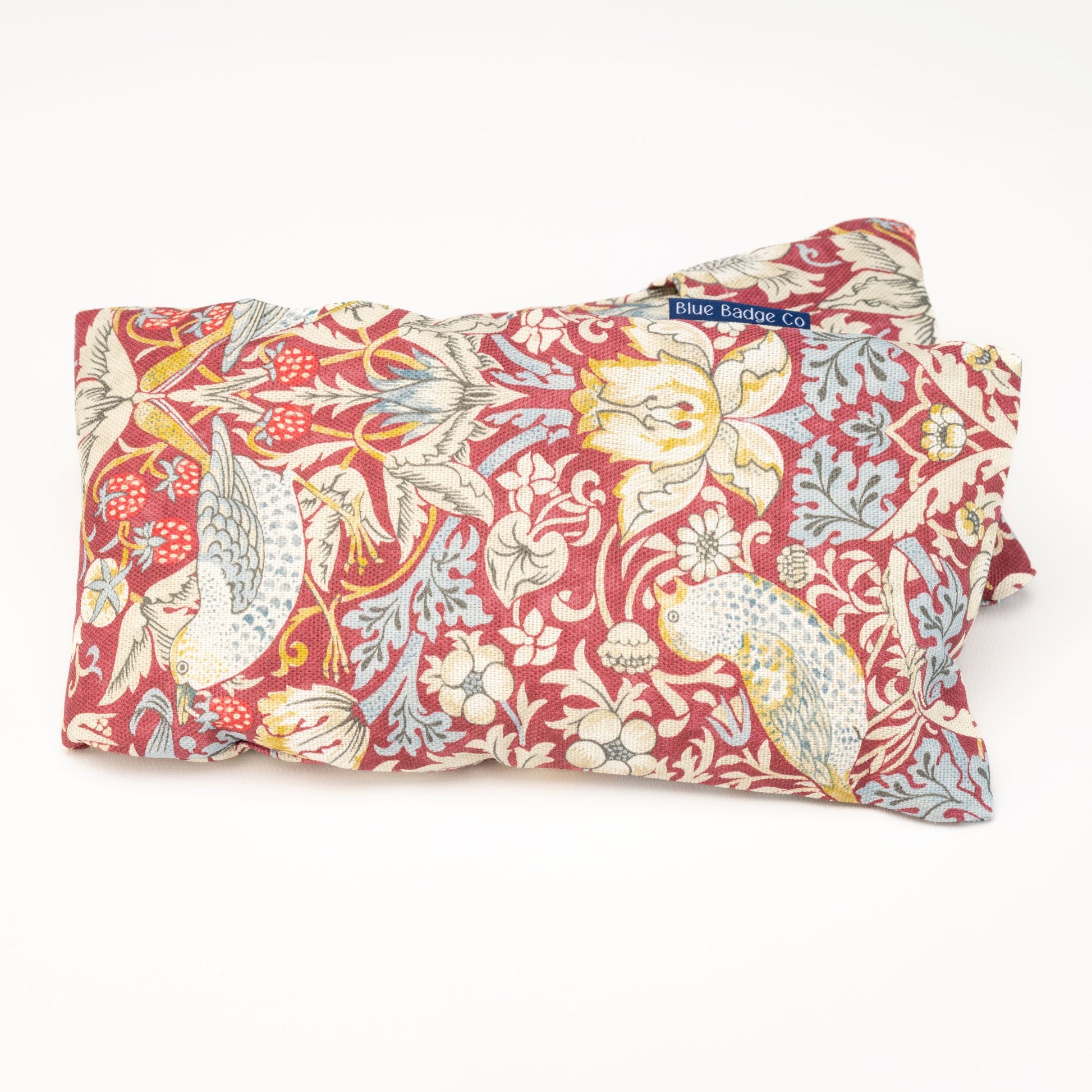 Lavender Wheat Warmer, Heated Wheat Bag in William Morris Strawberry Theif Plum