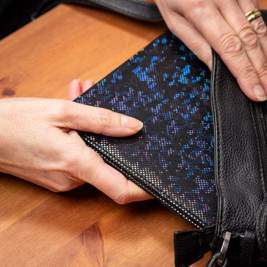 Blue Badge Wallet - Disabled Parking Permit Holder Holographic Black Glass - UK Made