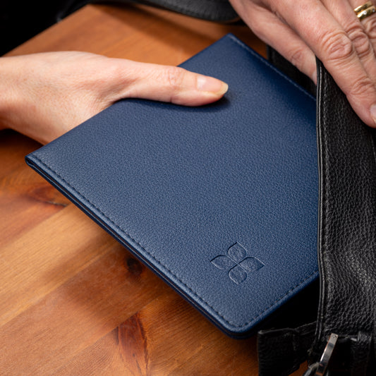 Disabled Blue Badge Parking Permit Wallet in Navy Leather - UK Made