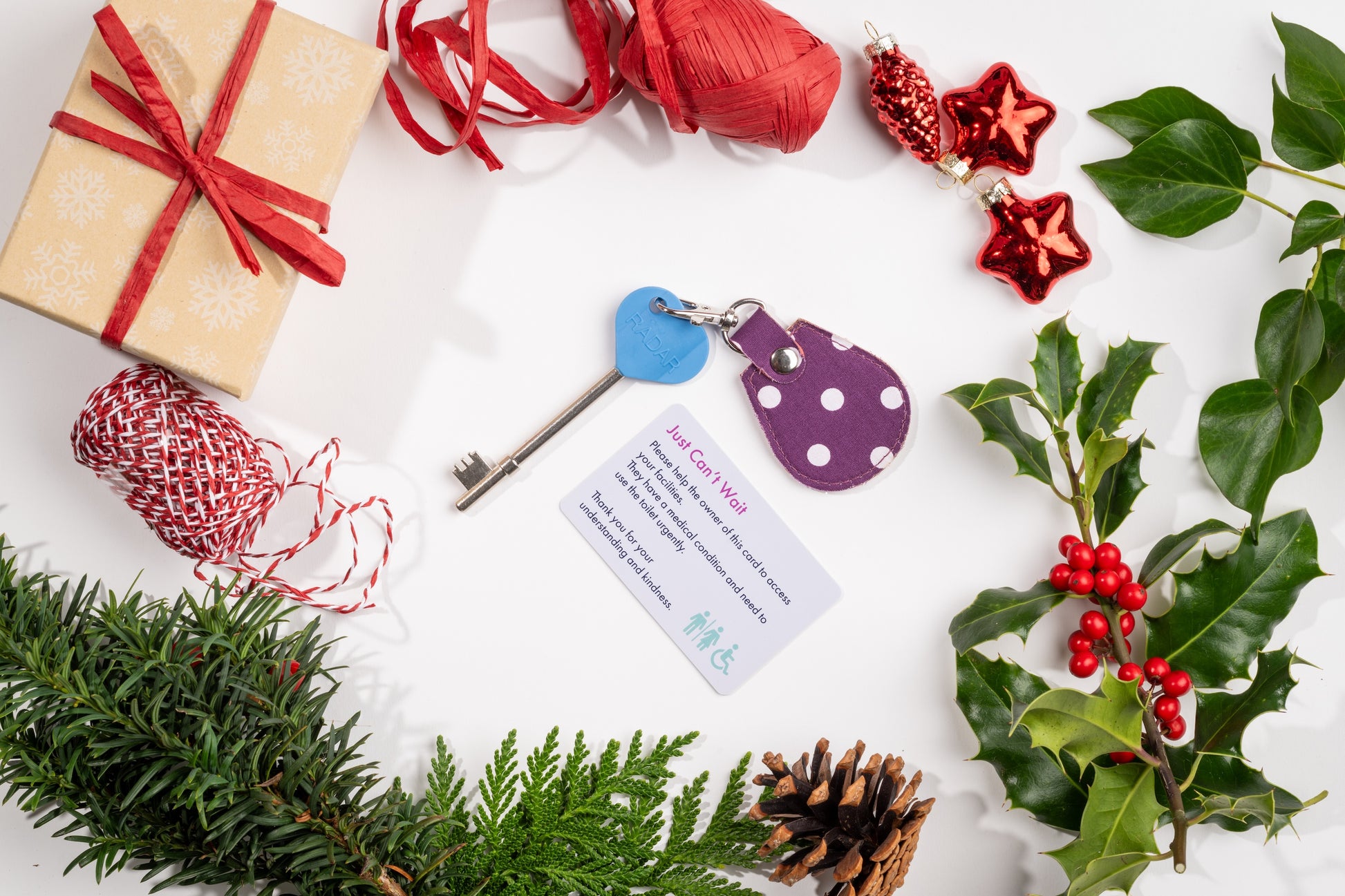 Unlock independence with confidence using this genuine RADAR key, complete with an elegant spotty grape fabric keyring and complimentary "Just Can't Wait" card. Opens over 14,000 accessible toilets across the UK in shopping centres, pubs, cafes, parks, airports, and train stations. Made in a UK factory using renewable energy.