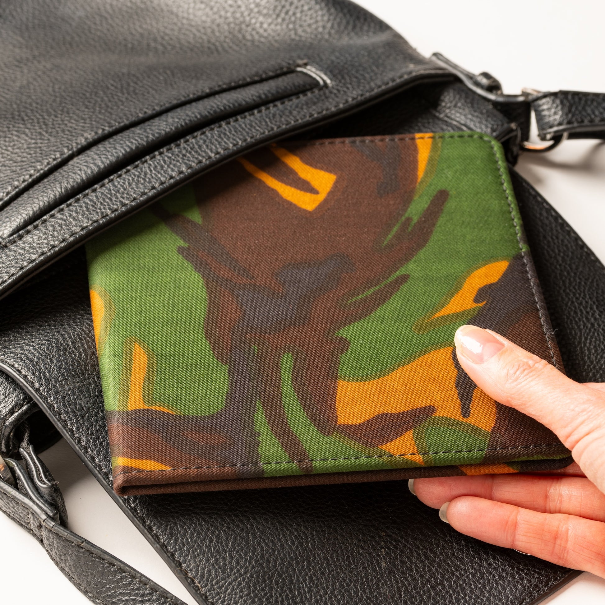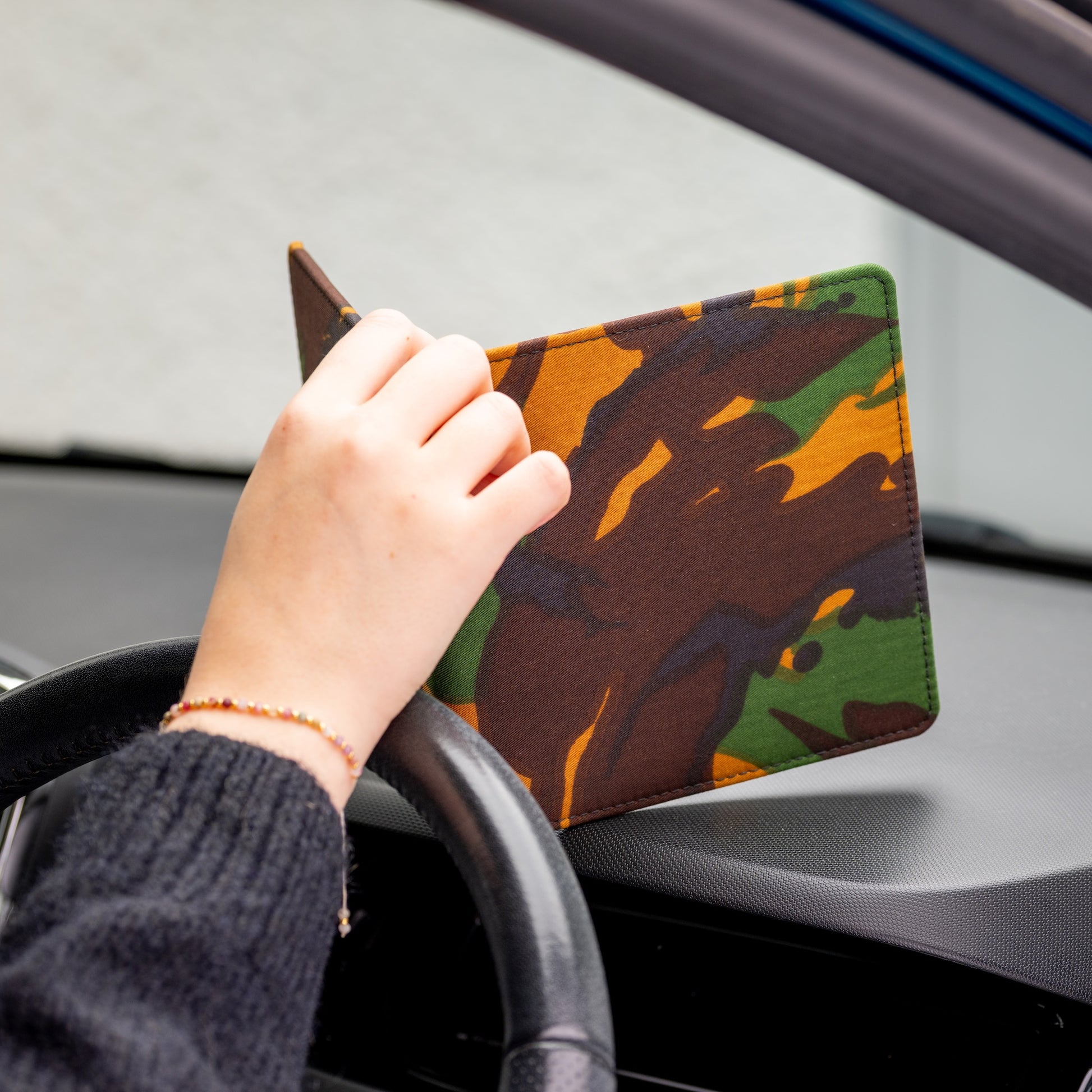 Keep your Blue Badge disabled parking permit safe, compliant, and organised with this robust army camouflage wallet. Hand-sewn from premium cotton in classic military green, brown, and khaki tones, this UK-made wallet features our exclusive Hologram Safe© design - a durable camouflage pattern that brings strength and resilience every time you use it.